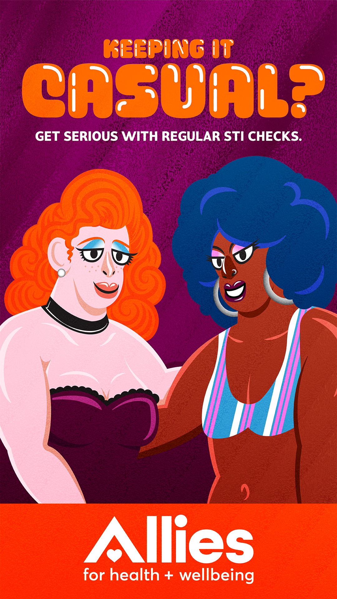 The campaign featured digital illustrations in motion for digital advertising as well as traditional print placements on billboards, in print media, and in posters hung up at local queer bars / businesses.